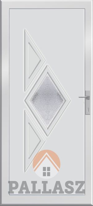 FELÁRAS KIEGÉSZÍTŐK | Az ajtóhoz MABISZ 2 acélcsapos ajtórúdzár és a 3 rétegű üveg vagy panel is rendelhető. További kiegészítő lehet a hidraulikus ajtóbehúzó, cilinderműködtetéssel ellátott ajtórúdzár, tolópajzs, gombkilincs. Díszpaneles bejárati ajtó alap üvegezése a víztiszta üveg és a katedrál csincsilla vagy a savmart üveg. Felár ellenében más katedrál vagy biztonsági üveg is renbelhető a panelbe.
