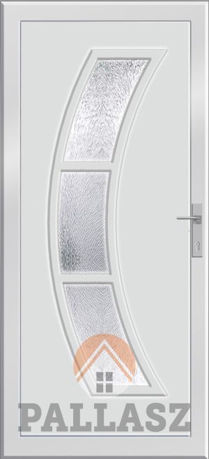 FELÁRAS KIEGÉSZÍTŐK | Az ajtóhoz MABISZ 2 acélcsapos ajtórúdzár és a 3 rétegű üveg vagy panel is rendelhető. További kiegészítő lehet a hidraulikus ajtóbehúzó, cilinderműködtetéssel ellátott ajtórúdzár, tolópajzs, gombkilincs. Díszpaneles bejárati ajtó alap üvegezése a víztiszta üveg és a katedrál csincsilla vagy a savmart üveg. Felár ellenében más katedrál vagy biztonsági üveg is renbelhető a panelbe.